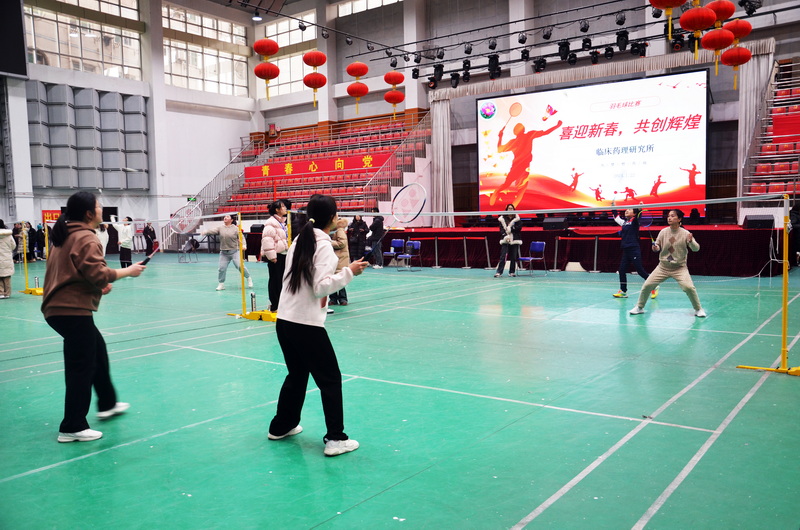12223日,临床药理研究所举办以“喜迎新春,共创辉煌”为主题的师生羽毛球交流赛,该所师生百余人参加比赛。药研所党总支书记李群出席开幕式并致辞。