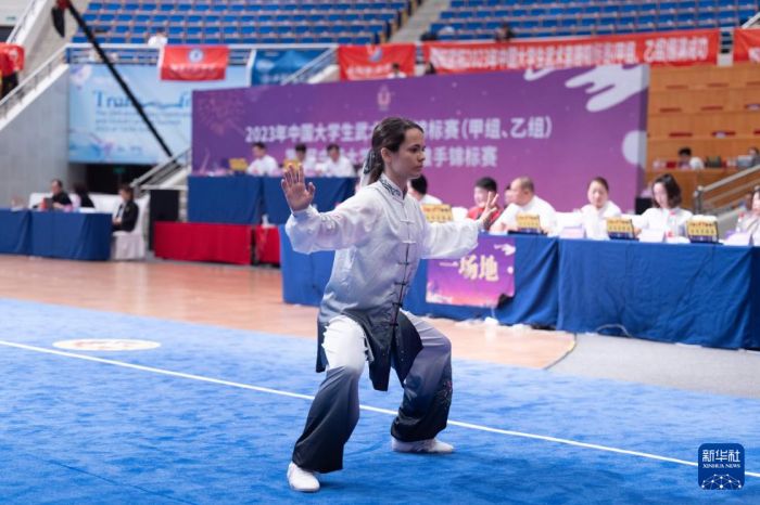 章伯涵5岁开始跟着父亲学习太极拳,这让她从小对中国产生了无限向往,2019年她选择来到中国求学。学习之余,她跟着安徽池州的一名太极拳老师继续学习太极拳,并于2023年10月在中国大学生武术套路锦标赛中获得留学生组女子陈式太极拳和太极拂尘两项一等奖。