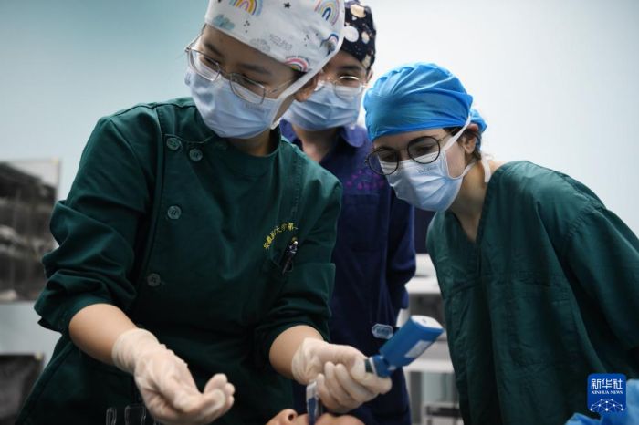 1月23日,章伯涵(右)在位于安徽省合肥市的安医大第一附属医院学习临床知识。新华社记者 张端 摄