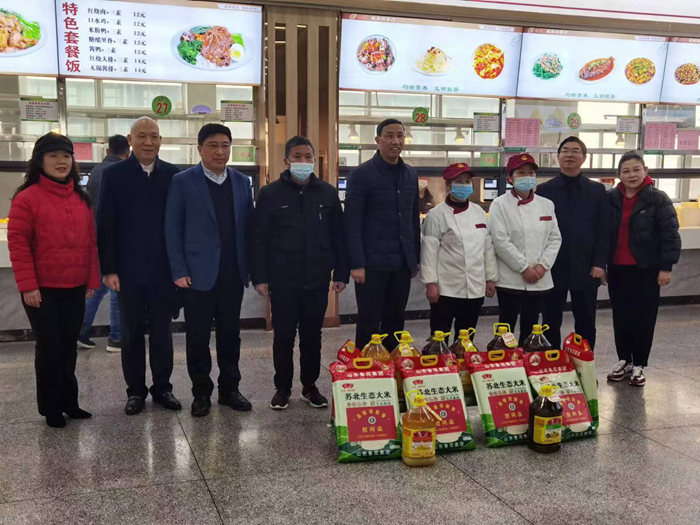 1月30日上午,副校长徐朝阳深入食堂和学生公寓等后勤服务保障一线,走访慰问了寒假期间坚守在各后勤服务岗位上的工作人员和生活困难职工,代表学校对他们的辛勤工作表示感谢,并送上慰问品。