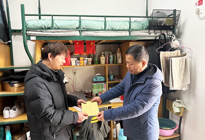 该院党委书记骆广东带领各年级辅导员深入学生寝室,倾听学子心声,并为学子送上慰问红包。他亲切关怀在寝学生,叮嘱同学们在校期间要严格遵守学校各项管理规定,提高安全责任意识,注意人身财产安全。同学们纷纷对学院的关心表以感谢,并表示会牢记嘱托,脚踏实地,艰苦奋斗,合理规划时间,让自己的春节充实而有意义。