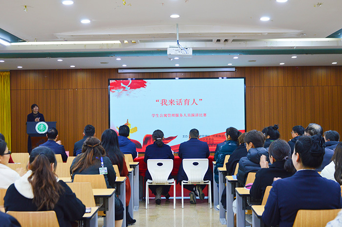 3月8日,由校后勤管理处(后勤集团)承办的学生公寓管理服务人员“我来话育人”主题演讲比赛在校本部举行,校后勤管理处(后勤集团)职工、学生代表和第三方服务企业人员近百余人参加活动。