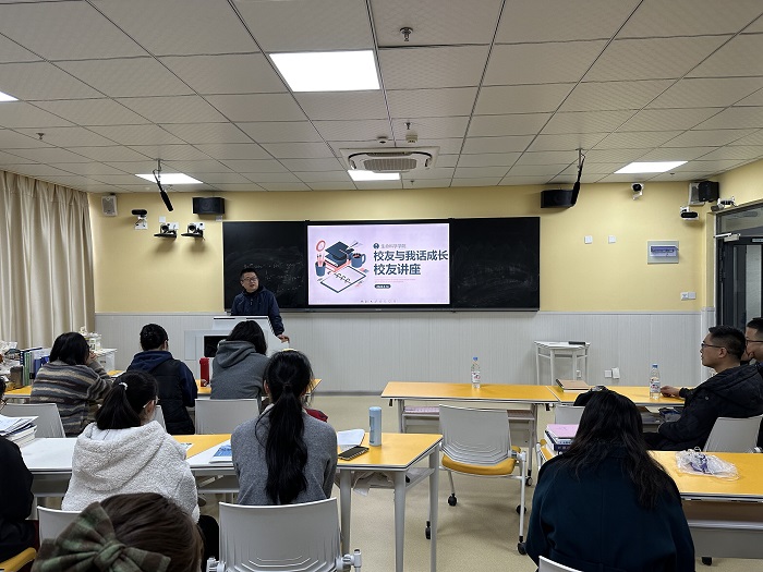 招聘宣讲环节,两位校友详细介绍公司的基本情况,同学们就岗位要求、成长路径等关心的问题仔细问询,两位校友耐心回应,对岗位职责、薪资待遇等一一作了解答。该院不少低年级学生也前来了解市场需求,为未来求职就业做准备。