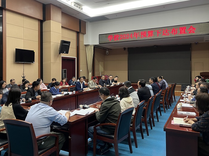 校财务处处长汪龙舒汇报了2024年预算编制情况。学校各二级部门和单位的主要负责人参加会议。