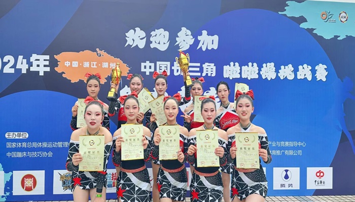 4月26日-28日,由国家体育总局体操运动管理中心、中国蹦床与技巧协会主办,湖州市体育局承办,浙江省体育局特别支持的2024年中国长三角啦啦操挑战赛在浙江省湖州市体育馆举行。来自全国14个省市近2300名选手参加比赛,经过激烈角逐,我校力行啦啦操队斩获“青年乙组-双人街舞自选动作”和“集体花球规定动作”两项冠军。