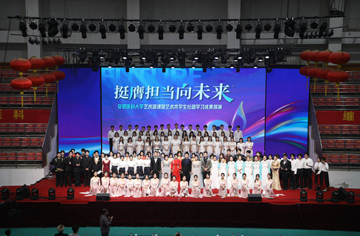 整场艺术团课气氛热烈,高潮迭起,充分展示安医学子青春昂扬、勇担使命的精神面貌。演出在大学生良医合唱团带来的中国共青团团歌《光荣啊!中国共青团中圆满落下帷幕。