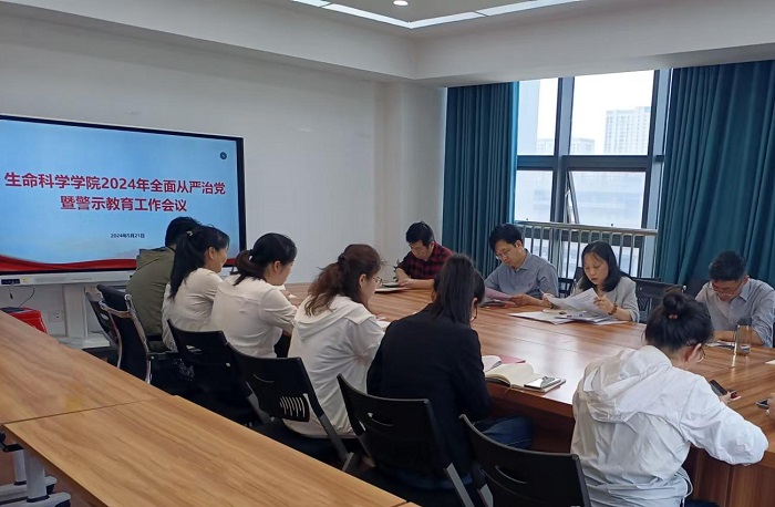 5月21日上午,生命科学学院召开2024年全面从严治党暨警示教育工作会议,集中学习了习近平总书记关于党的自我革命的重要思想,传达了学校党委全面从严治党暨警示教育工作会议精神,解读了学校2024年全面从严治党工作要点,并就学院今年全面从严治党重点工作提出具体要求。该院党委书记沈慧主持会议。