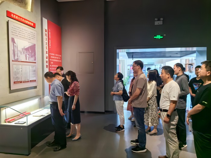800多块图文展板、15个场景雕塑、19个多媒体展示、1000余件文物馆藏……全体师生党员在馆内边走边看,不时驻足,深入了解了蔡晓舟、马毛姐等重要人物和北乡支部创建、合肥解放等重大事件,全面了解合肥人民在党的领导下创造的不朽功勋和光辉业绩。参观学习后,全体党员面向党旗,重温入党誓词,以铿锵有力的声音表达赓续红色血脉、践行初心使命的坚定决心。