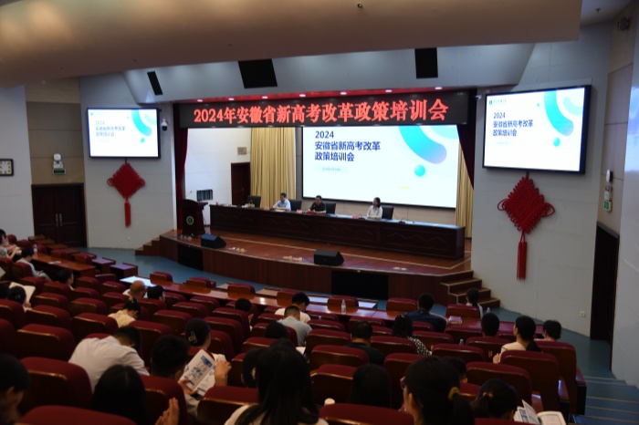 2024年是安徽省新高考改革落地首年,6月18日,学校在图书馆第一学术报告厅举办2024年安徽省新高考改革政策培训会,更好帮助师生了解新高考改革政策,确保2024年本科招生宣传工作顺利开展。副校长吕雄文出席培训会并讲话,安徽省教育招生考试院招生考试研究处负责人受邀来校作政策培训。