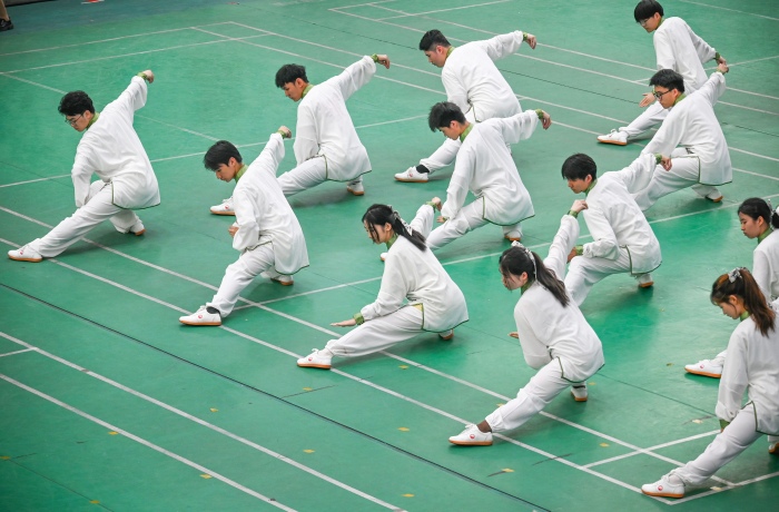 肖圣龙指出,人人习练太极拳是我校着力打造的“新六艺”素质教育品牌之一。十一年来,学校在学生中开展并推动习练太极拳,涵养自尊自信、理性平和、刚健有为的心理品质,充分发挥了太极拳习练的文化育人、心理育人作用,形成了思想引领、人人习练、推广传播一体化工作推进体系。