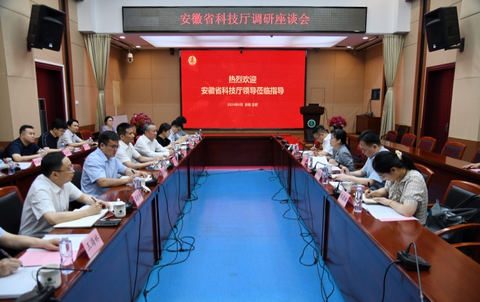 6月19日,安徽省科学技术厅厅长赵明一行来校调研指导工作。校党委书记王琦出席会议并讲话,校长翁建平主持会议,学术副校长张智作专题汇报。