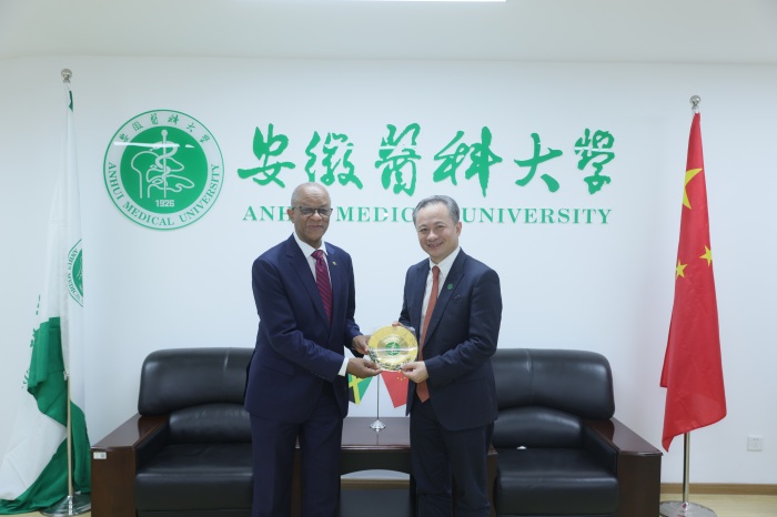 翁建平向亚瑟·威廉姆斯介绍了我校的基本情况及牙买加籍留学生在我校学习情况。他表示,留学生国家驻华大使参加毕业典礼在我校历史上是第一次。这是学校人才培养中的一件大事,充分体现了牙买加政府对留学生的关心和对我校的信任,充分体现了中牙两国人民的友谊。希望以大使此次访问为契机,学校在人才联合培养、联合科学研究、文化交流等多领域与牙买加高校及医疗机构开展深度合作,为促进两国民心相通做出积极贡献。