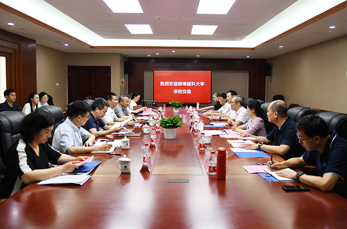 7月9日下午,蚌埠医科大学党委书记蒋家平、校长郑兰荣一行来我校交流工作。校党委书记王琦主持座谈会,校长翁建平、副校长吕雄文出席会议。