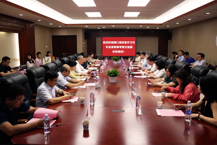 7月12日上午,澳门高校医疗卫生专业类教师考察交流团来我校参观访问并交流工作。校长翁建平会见访问团,副校长余永强主持交流座谈会。