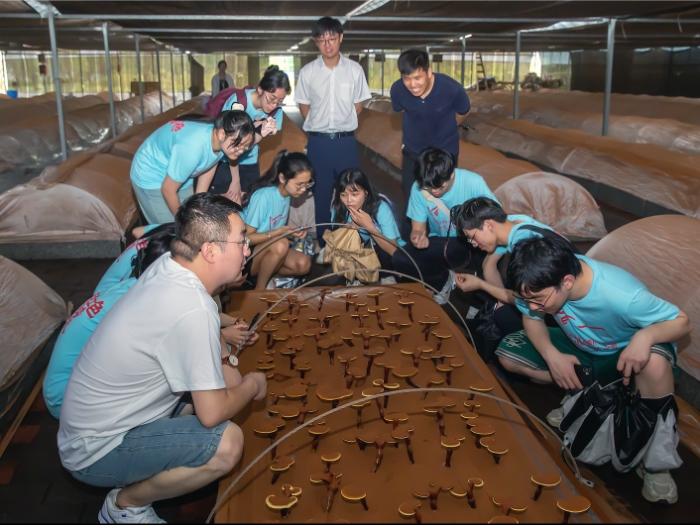 实践团前往安徽中莱实业有限公司考察学习,走进生产车间,参观种植大棚园区和灵芝保健品展馆,从育种播种过程和实物展示等方面了解当地特色药业,体验灵芝培育过程,加深对灵芝药用价值的认知,实地感受当地药用菌产业对于带动当地就业的重要作用。在小南京村,村委会副主任杨航与团队成员座谈交流,从村名的由来、发展理念、产业项目、人才引进等方面作了详细介绍,并带领大家参观了具有明显区域特色的休闲农庄、光伏产业园等处。通过调研与实践,成员们深切感受到了现代农业的蓬勃发展和我国乡村振兴发展取得的一系列成就。