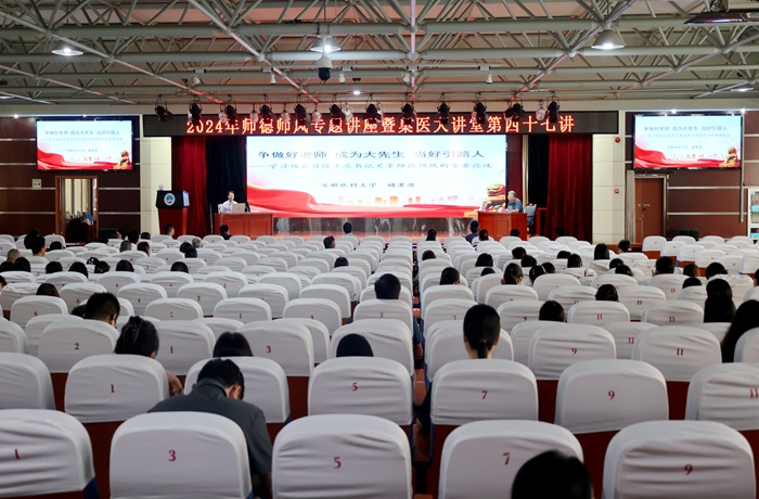 讲座中,储著源以《争做好老师 成为大先生 当好引路人——学习领会习近平总书记关于师德师风的重要论述》为题,从深刻领会师德师风的核心要义、正确把握师德师风的价值指向、培育弘扬师德师风的实践方略三个方面,重点阐述了加强师德师风建设的重要性。他表示,师德是深厚的知识修养和文化品位的体现,师德需要教育培养,更需要老师自我修养。做一个高尚的人、纯粹的人、脱离了低级趣味的人,应该是每一个老师的不懈追求和行为常态。加强师德师风建设,要坚持教书和育人相统一、言传和身教相统一、潜心问道和关注社会相统一以及学术自由和学术规范相统一。希望广大教师做学生锤炼品格、学习知识、创新思维、奉献祖国的引路人。