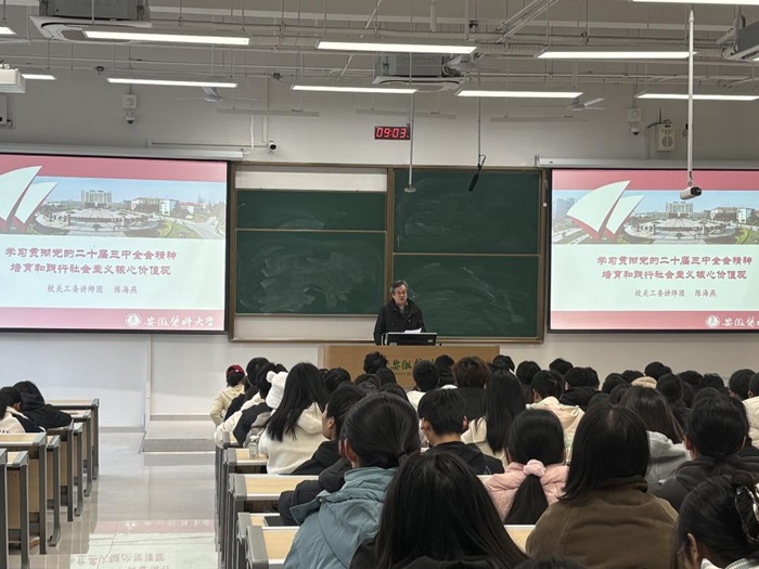 11月27日,精神卫生与心理科学学院特邀校关工委“五老”宣讲团成员陈海燕,为2024级本科新生作“学习贯彻党的二十届三中全会精神,培育和践行社会主义核心价值观”专题报告会。