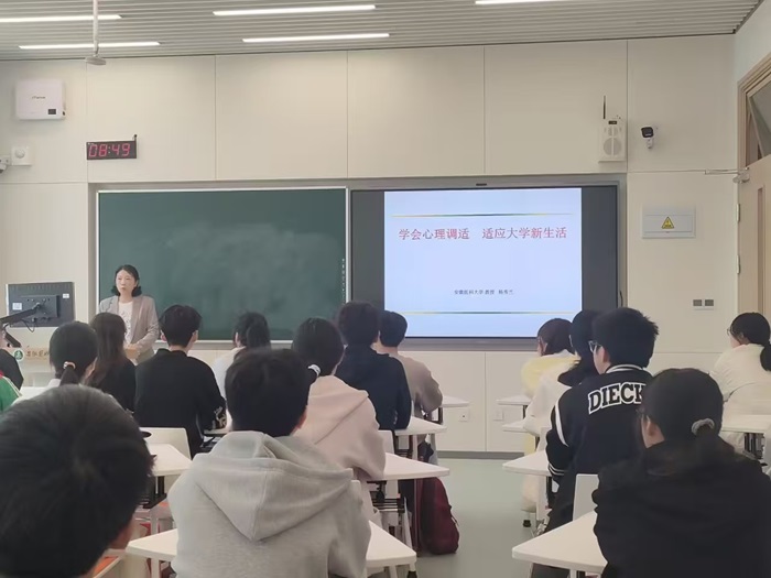 学院党委书记杨秀兰为学生作了主题为“学会心理调适,适应大学新生活”的讲座,分析常见的心理健康问题,传授“12种心理调适法”,帮助新生认识到学会心理调适,达成心理、生理和社会健康完满状态的重要性,并鼓励大家树立人生远大目标,合理规划学业,养成健康的生活行为方式。学院还通过举办篮球素质拓展、干花明信片互赠、心理健康知识竞赛等活动,让新生在浓厚的知识浸润和情感交流中,学会无惧挑战、迎难而上,以更加坚韧不拔的心态迎接大学生活。