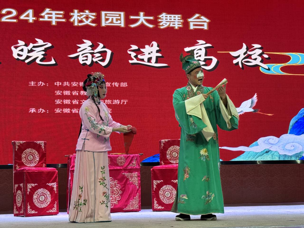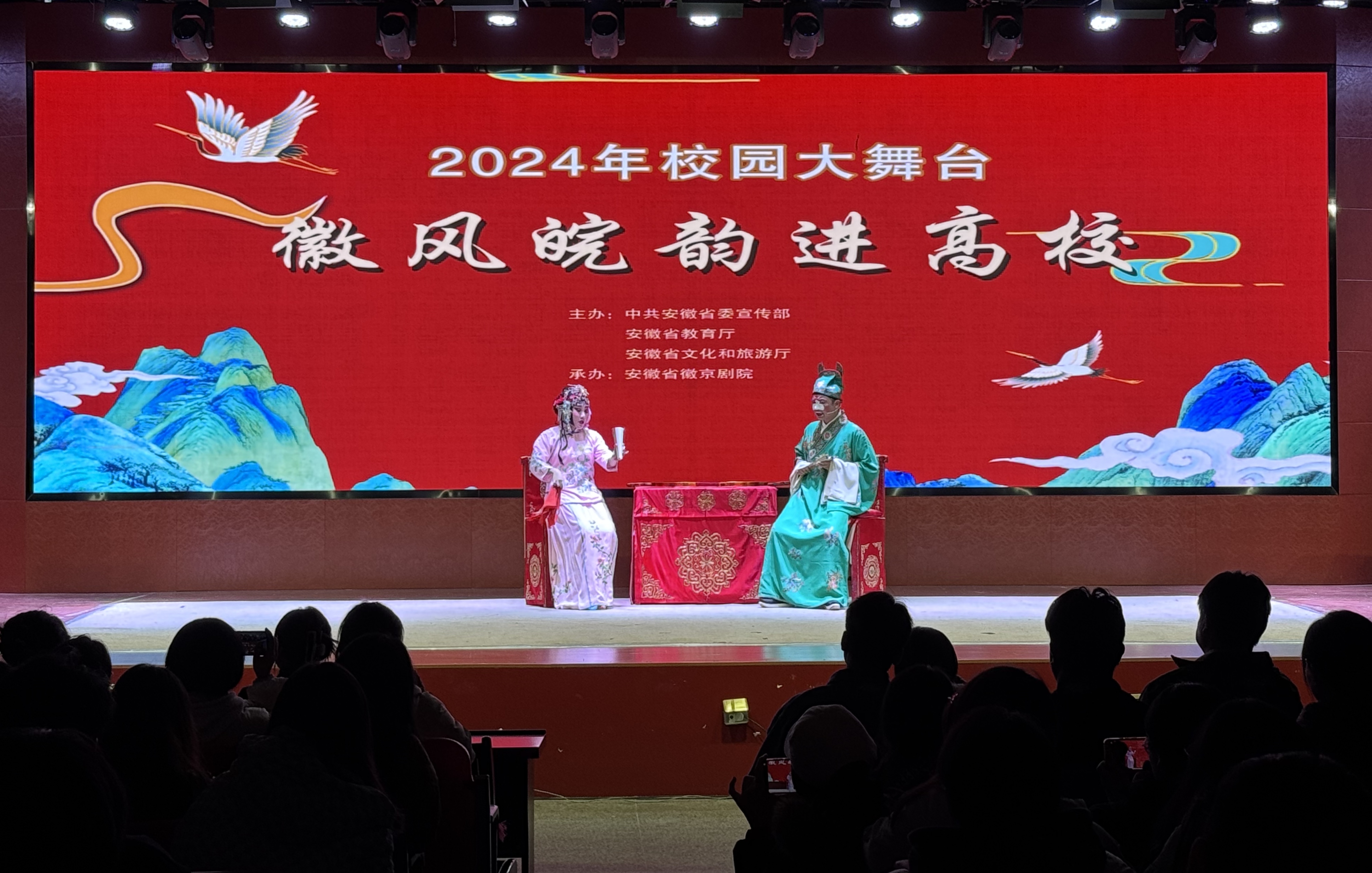 12月10日晚,2024年“校园大舞台”徽风皖韵进高校活动在我校南校区多功能会议厅举行,来自安徽省徽京剧院的表演艺术家们带来一场精彩绝伦的视听盛宴,400余名师生现场观看演出。