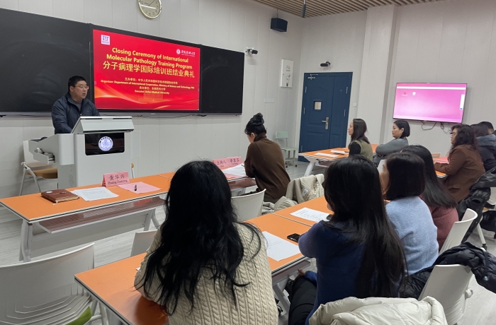 12月24日上午,由科技部主办、我校承办的分子病理学国际培训班举行结业典礼,来自蒙古国的18名生物医疗科技工作者顺利结业。国际教育学院直属党支部书记、院长黄华兴作总结讲话,国际合作交流处(港澳台事务办公室)副处长、副主任兼国际教育学院副院长李菲菲主持结业典礼。