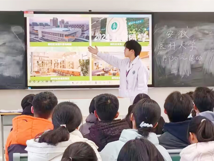 与母校携手,展安医风采。学院2024级临床医学李莹莹等同学回访高中母校,详细介绍我校的历史沿革、校园文化、办学特色、重点学科、专业设置等情况,并结合亲身经历,从学习方法、备考经验、大学生活、专业选择等多个方面进行分享,为即将参加高考的高三学子答疑解惑,用自己的故事激励母校的学弟学妹们勇敢逐梦。