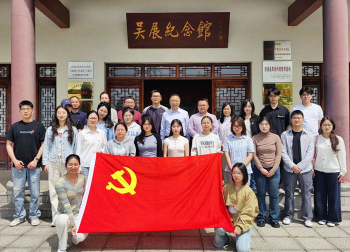 在省级示范村转水湾村,师生党员实地走访调研“党建+产业”乡村振兴模式。村党支部书记详细介绍基层党组织如何通过产业融合带动乡村发展,让师生深刻感悟基层党组织的核心引领作用。在吴展纪念馆,大家聆听革命烈士英勇事迹,观看历史文物与影像资料,感慨峥嵘革命岁月,并在烈士塑像前重温入党誓词,在铿锵诺言中进一步坚定理想信念,凝聚奋进力量。
