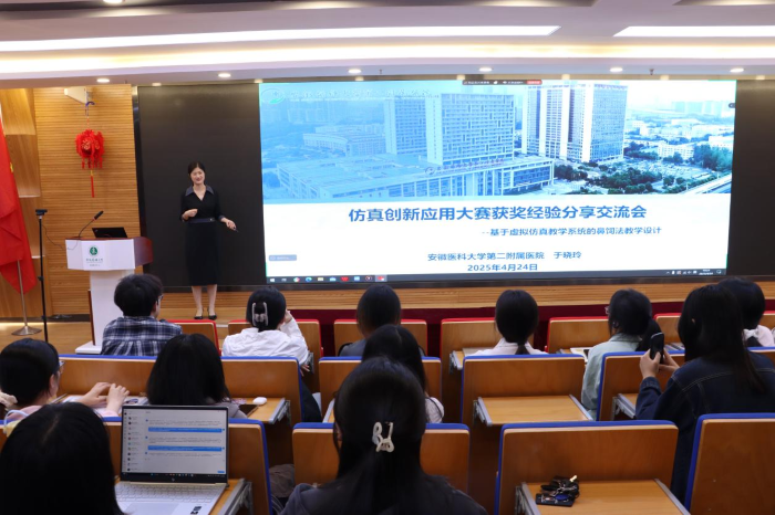 分享环节中,二附院核医学科护士长于晓玲从护理教学角度,系统拆解鼻饲法虚拟仿真教学全流程;我校青年教师杨帆通过《心肺复苏——混合式仿真实践教学创新设计》,展示了跨平台虚实联动教学模式的构建逻辑与实施成效;四川大学华西临床医学院学生彭靖然与我校放射医学专业学生吴瑞雪,分别就“生物力学与智能算法在脊柱侧弯矫具研发中的融合应用与“放射性药物研发的数字化实验思路展开分享。典型案例解析与设计方法论的提炼深化了“虚实结合”的理念,为未来教学改革与科研创新提供了新思路。