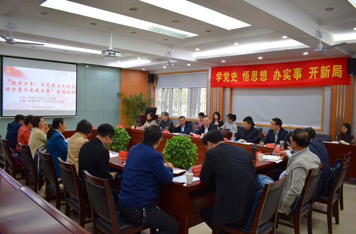 论坛中,王先俊教授以及我校和安徽财经大学、安徽中医药大学等高校马克思主义学院负责人,作为省马克思主义学会成员,分别作了题为《百年大党创造中国奇迹的思想密码》《学史明理:马克思主义的真理力量》《感悟真理力量,开启全面建设中国特色社会主义现代化新征程》《党的百年历史是进行伟大斗争的历史》等的主题汇报。自由发言阶段,作为学会成员,来自安徽财经大学、合肥工业大学、合肥师范学院、铜陵学院等多所高校的专家教授,从不同视角先后就论坛主题进行研讨。