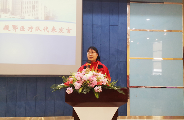 她是张泓,中共党员,博士研究生,急诊医学科主任医师,教授,现任我校第一附属医院高新院区副院长。作为医生,从业三十四年来,她坚守在急危重症救治第一线,以过硬的业务能力、宽厚的医者仁心,挽救了无数患者的生命。新冠肺炎疫情发生后,积极响应号召,主动请缨,带领安徽支援湖北第四批(安医大一附院)医疗队奔赴武汉,整建制接管的华中科技大学同济医学院附属协和肿瘤中心Z11重症病区,让党旗在抗疫一线高高飘扬,圆满完成党和国家交给的任务,是患者心中的好大夫,同行眼中的好医生。4月22日,曾在湖北武汉的病房中得到张泓和她同事们精心照顾、从新冠肺炎中康复的84岁高爷爷和77岁龙奶奶夫妻俩,带着当初的约定,不远千里来到安徽合肥,在时隔405天之后与曾经朝夕相处的援鄂队员们重逢,并送上锦旗以表达内心深深的感激之情。