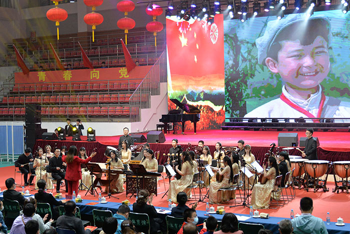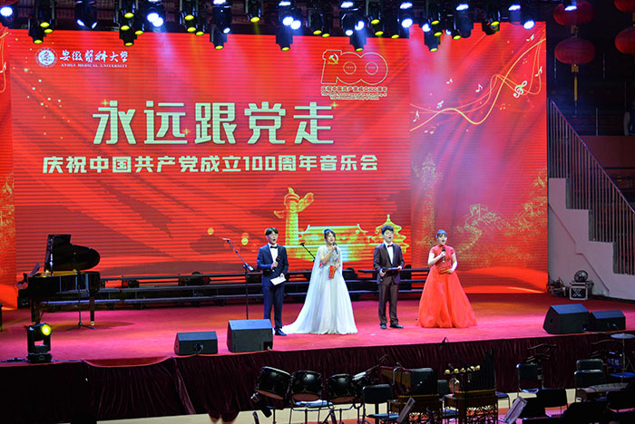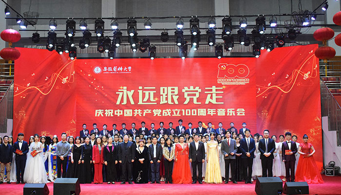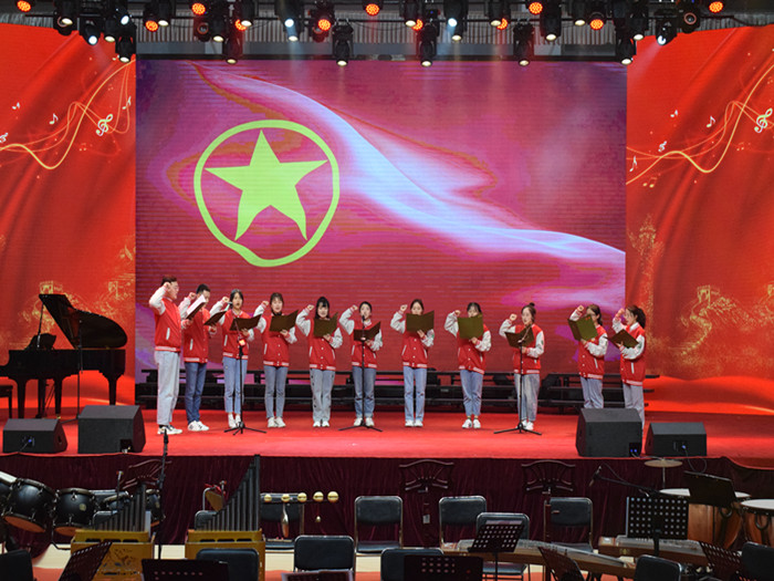 4月28日晚,我校“永远跟党走——庆祝中国共产党成立100周年音乐会”上,16个由校“学党史、强信念、跟党走”大学生党史宣讲团动情讲述的党史故事,与16个音乐艺术节目巧妙融合,将现场师生带回到了中国共产党带领全国人民完成救国大业、立国大业、兴国大业、强国大业,为奋力实现中华民族伟大复兴中国梦而接续奋斗历程中的一个个震撼人心的场景之中。