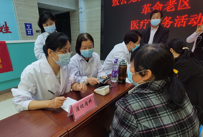 内科、外科、骨科等临床专家为百余名老区百姓进行了义诊,发现数名高危高血压病患者并进行了相应的处理。对住院患者进行教学查房、指导当地医生规范诊疗,受到老区乡亲和医护人员的热情欢迎。活动期间,一附院发挥省级公立医院的自身优势,向天堂寨镇中心卫生院捐赠了价值2000元的降压、降糖、护胃等常用药品药品,巩固拓展脱贫攻坚成果同乡村振兴有效衔接,是民主党派与党同心、学党史办实事的具体体现。