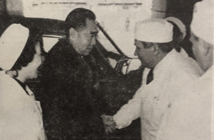图为1960年朱仲丽陪同周恩来总理接见医院苏联顾问