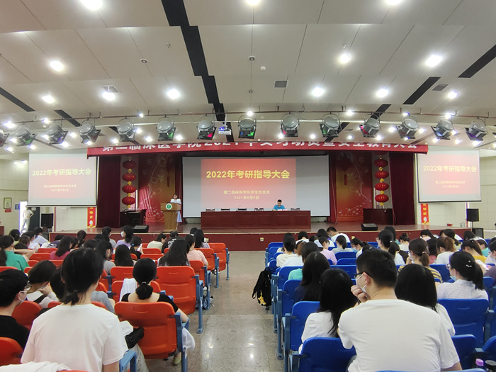 6月8日,第二临床医学院学生党总支在南校区多功能厅举行2022年考研指导大会,该院学生党总支有关负责同志主持会议。三位优秀学生代表受邀分享经验,为准备参加2022年研究生入学考试的同学指点迷津。