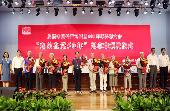 该院党委副书记、副院长刘全礼主持大会,常务副院长李家斌宣读医院党委表彰决定。大会为党龄满50年的医院老党员代表颁发“光荣在党50年”纪念章并敬献鲜花,新党员代表进行了集体宣誓。