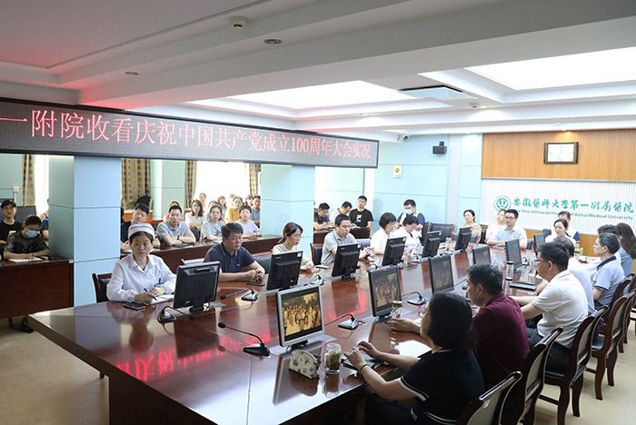 在这个十分重大而庄严的日子,中国共产党迎来百岁华诞。随着庄严的国歌声响起,在校校领导顾家山、曹云霞、刘群英、余永强、梁朝朝、吕雄文、黄新美和全校师生医护员工代表通过实况直播,在校图书馆第一报告厅内共同见证激动人心的辉煌时刻。副校长肖圣龙在中共安徽省委党校学习并收看了庆祝大会盛况。雄壮的乐曲声中,全体师生医护人员的骄傲之情油然而生,全体共产党员更是充满自豪之情。习近平总书记在庆祝中国共产党成立100周年大会上的重要讲话引发我校师生医护员工热烈反响。