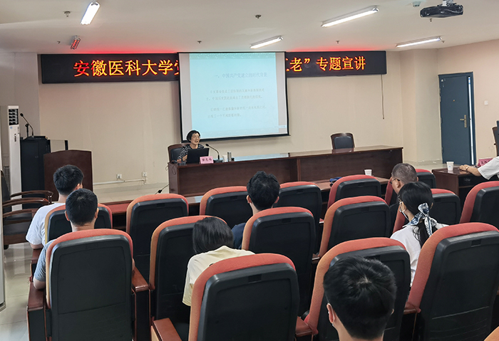 宣讲中,张志梅以党史学习教育的重大意义为切入点,从辛亥革命、新文化运动、五四运动到新中国的成立,深情讲述了中华民族命运发生历史性变化的大事,使党员们深刻感受到中国共产党是领导中国人民不断开创事业、发展新局面的核心力量。她还激励广大学生党员弘扬安医精神,传承红色基因,争做勇担复兴使命的时代新人。