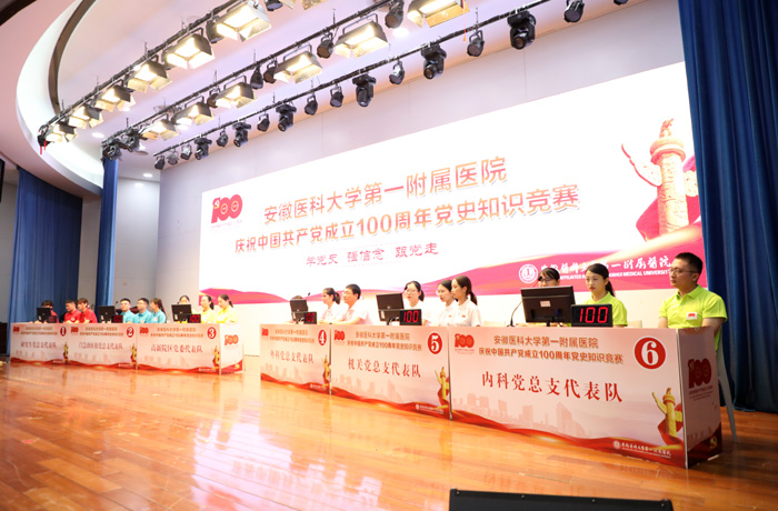 7月9日下午,第一附属医院举办庆祝中国共产党成立100周年党史知识竞赛活动,以进一步丰富党史学习教育内容,以实际行动践行初心使命、弘扬安医精神,营造学党史、强信念、跟党走的浓厚氛围,庆祝中国共产党成立100周年。该院党委书记金宗祥出席活动并现场观看比赛。