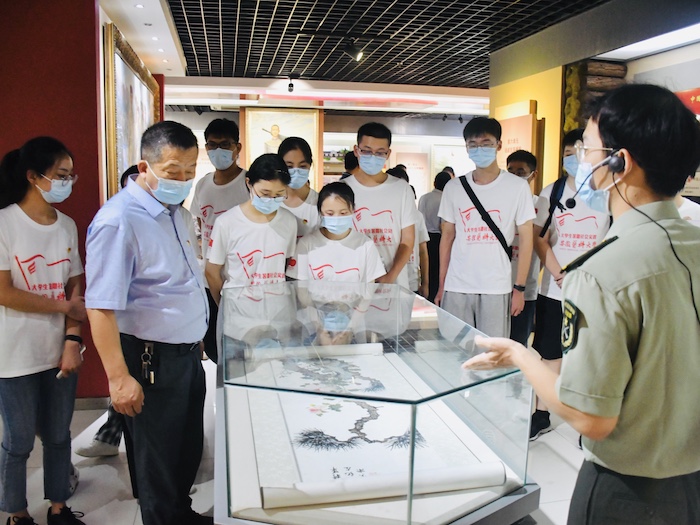 在金寨县革命博物馆,肖圣龙和实践团成员一同跟随讲解员走进了“两膺上将、国之勋臣”洪学智将军的戎马一生,每一位在场的师生都接受了一次深刻的红色教育和革命洗礼。