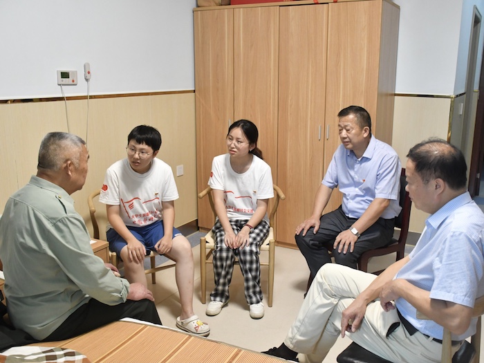 肖圣龙和实践团来到金寨县光荣院,看望慰问了那里的退伍老兵,并送去米油等生活必需品。肖圣龙与退伍老兵们亲切交谈,和同学们一起倾听他们的红色故事。