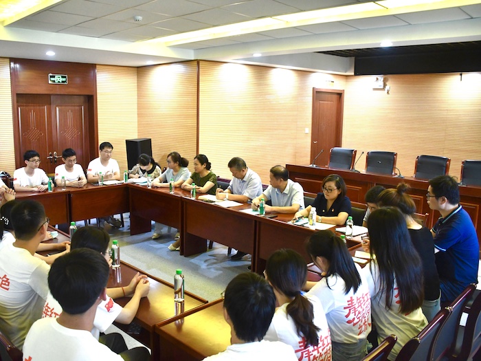 随后,肖圣龙与实践团师生进行座谈交流,认真听取了成员们的收获与感悟。从有感于金寨深厚的红色文化底蕴到惊叹于当地的医改现状和城市发展,从巩固脱贫攻坚成果到助力乡村振兴发展,从实践所见所闻到自己家乡建设……同学们个个踊跃发言,气氛热烈。肖圣龙对同学们不畏酷暑,坚持服务群众、践行初心的精神表示充分肯定,也对同学们前一阶段的义诊、调研和科普宣传工作给予了高度认可。他强调,暑期社会实践具有很重要的社会服务作用和实践育人价值,是青年大学生拓展视野、增长才干、接受教育的社会大课堂。大家所到的金寨革命纪念馆、红军纪念堂等红色地标就是生动鲜活的思政课堂,青年同学通过真实的情感体验、现实体会和深情对话,在耳濡目染中深化了爱党爱国之情,真正地接受了一场生动的社会“大思政课”。