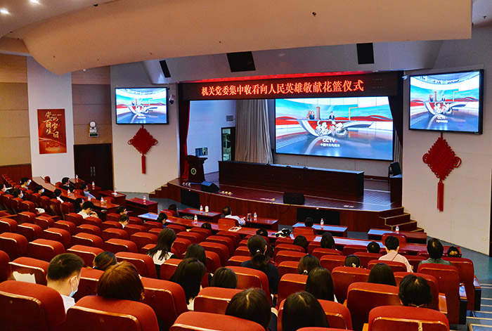 学校广大师生分别在各单位、各学院组织下,在会议室、教室、实验室、宿舍等地收看直播,共同缅怀先烈,汲取奋进力量。