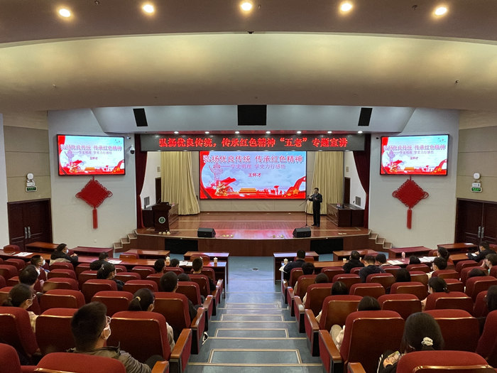 10月20日下午,第一临床医学院在校图书馆第一报告厅举办专题宣讲活动。原校党委副书记、现校关工委副主任王怀才受邀作题为《弘扬优良传统,传承红色精神》的党史学习教育专题宣讲报告。该院党委副书记、学生党总支书记李琮主持宣讲报告会。