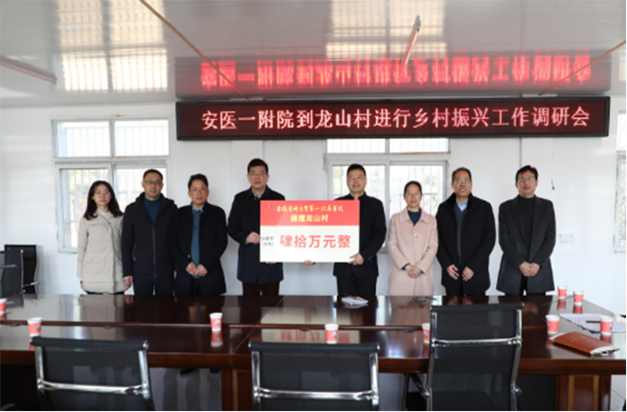 座谈会后,医院领导一行赴医院定点帮扶村太湖县江塘乡龙山村开展帮扶调研,听取了龙山村乡村振兴工作汇报,实地查看了龙山村新建加工厂项目,并代表医院向龙山村捐赠帮扶资金40万元。