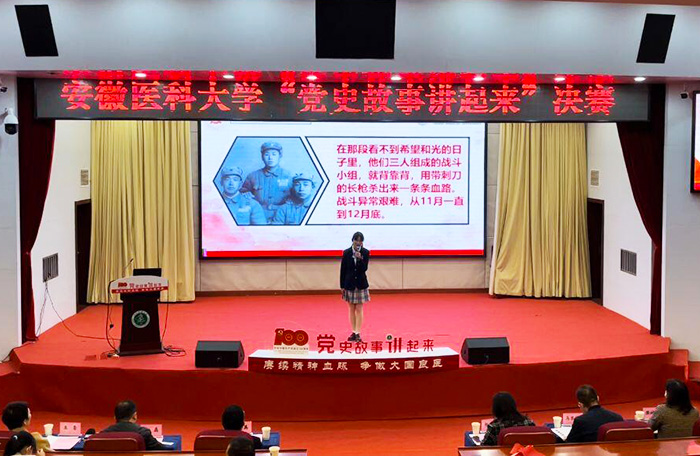 比赛中,同学们慷慨激昂、感情真挚,紧紧围绕党史,以丰富鲜活的史实、生动鲜活的语言、激扬振奋的语调,用小切口呈现大主题、以小故事讲清大道理,声情并茂地讲述了《三面旗帜》《半条被子寄初心》《夏明翰的三封家书》《胡兰精神照后人》等党史故事,让师生重温了中国共产党波澜壮阔的百年奋斗历程,深刻感受到李大钊、赵一曼、左权、白求恩、吴孟超等革命先烈、英雄模范人物、杰出党员代表,为国家、为人民、为事业而奋斗终身的坚定信念和奉献精神,表达了为实现中华民族伟大复兴贡献青春力量的决心。