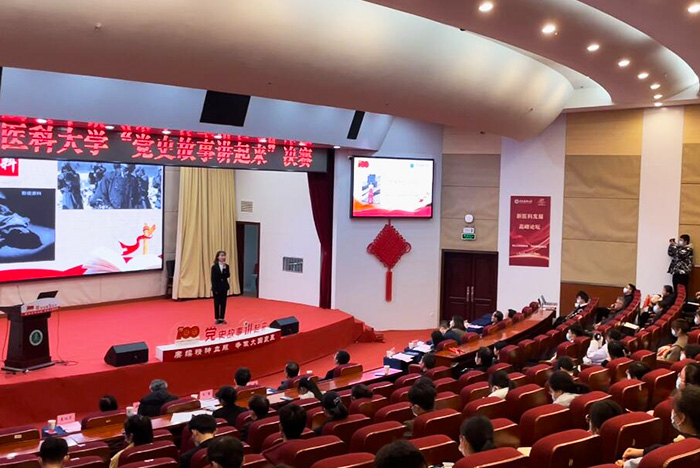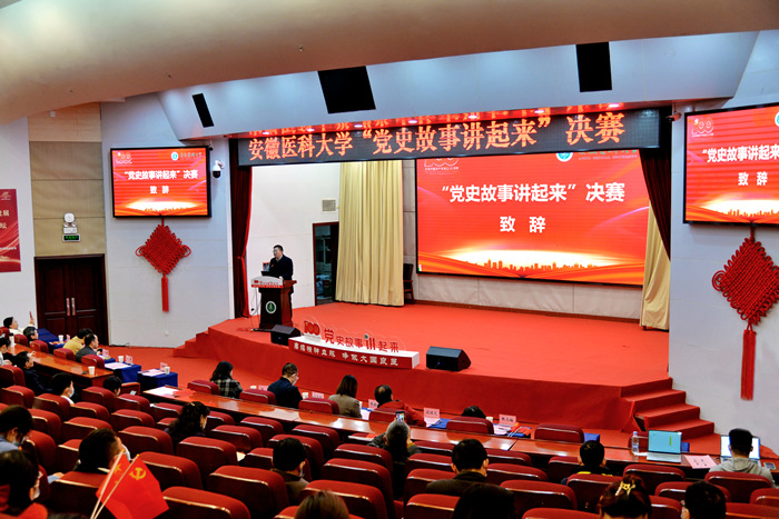 刘群英在致辞中指出,党史绝不是停留在教科书上的文字描述,而是一段段动人心弦的奋斗故事,一颗颗满怀家国的赤子之心。全校上下学习宣传贯彻党的十九届六中全会精神之际,举办“党史故事讲起来”决赛是学校党史学习教育阶段性成果的一次集中汇报展示。他希望全体同学深刻铭记中国共产党百年奋斗的光辉历程,深刻认识中国共产党为国家和民族作出的伟大贡献,深刻感悟中国共产党始终不渝为人民的初心宗旨,深刻领会中国共产党成功推进革命、建设、改革的宝贵经验,在党史学习教育中汲取奋斗力量,弘扬伟大建党精神,不断增强“四个意识”、坚定“四个自信”、做到“两个维护”,努力成长为堪当民族复兴大任、护佑人民健康的大国良医,以优异成绩迎接党的二十大胜利召开。