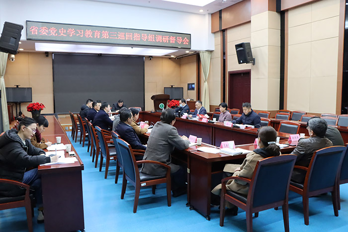12月17日下午,省委党史学习教育第三巡回指导组副组长魏建华一行来我校调研督导,并传达了中央、省委党史学习教育最新部署要求。校党委副书记刘群英陪同调研并主持座谈会。