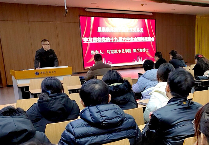 12月24日晚,巢湖临床医学院举办党的十九届六中全会精神宣讲报告会。该院学生党总支书记李常玉主持报告会。校党的十九届六中全会精神宣讲团成员、马克思主义学院副教授崔兰海受邀,为该院师生党员作专题宣讲。