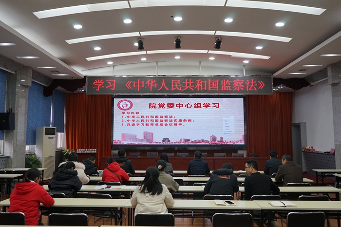 该院党委领导班子成员、各党支部书记、职能部门负责人和职能部门新进职工参加此次学习。(附属口腔医院 耿雅)