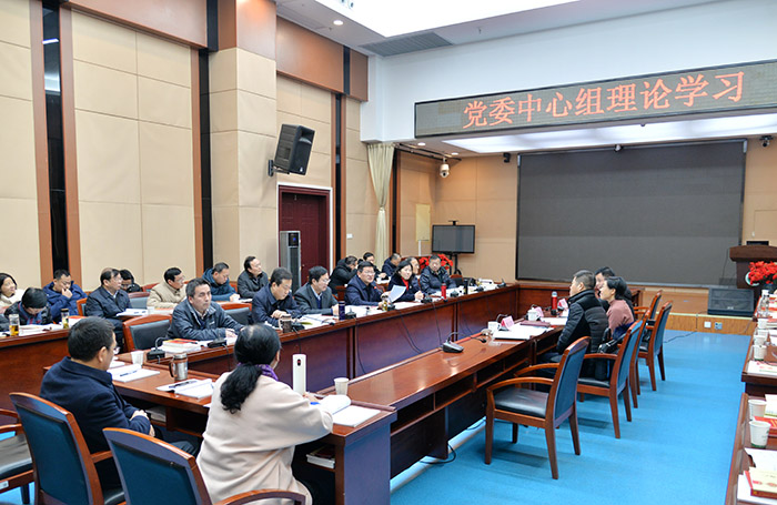 1月6日下午,学校召开党委理论学习中心组学习会,专题学习研讨党的十九届六中全会精神。省委党史学习教育第三巡回指导组成员到会指导。校党委理论学习中心组组长、校党委书记顾家山主持会议。校长曹云霞,校党委副书记刘群英,副校长余永强、梁朝朝、肖圣龙、吕雄文出席。