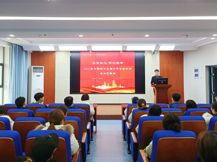 校党的十九届六中全会精神宣讲团成员、马克思主义学院副教授周师受邀为该院党委中心组成员作专题宣讲。他紧紧围绕学习领会习近平总书记在全会上的重要讲话和《中共中央关于党的百年奋斗重大成就和历史经验的决议》,从深刻认识“总结党的百年奋斗重大成就和历史经验的重大意义”“党的百年奋斗的初心使命和重大成就”“从党的百年奋斗历程中汲取智慧和力量”等方面对党的十九届六中全会精神进行了全面导读、深入阐释和系统讲解。报告会主题鲜明、脉络清晰、精彩生动,既有理论高度又有现实思考,让在座教师深受教育和启发。